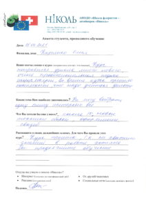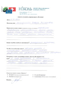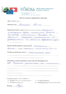 Училась в » Николь» в 2001 году. Потрясающее обучение! До сих пор помню все, хотя профессия у меня другая. И вы знаете- знания полученные в Школе,помогают мне во многом и всегда. Особая благодарность Марине и Алексею Булатовым. Прекрасные преподаватели!