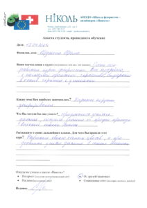 Когда тебе 22, ты окончила институт, и вроде все хорошо, есть работа по-специальност, но что-то все же не то…чувствуешь.не твое!…хочется чего-то, и даже знаешь чего! Вот так и я, окончила институт, поработала и поняла, что хочу заниматься цветамиНо ведь для того, что бы разбираться во флористике, нужны базовые знания (не смотря на опыт). Так я и попала в Школу НИКОЛЬ, сначала на 10 дней, а потом и на 2 года…))) Школа НИКОЛЬ- это невероятный объем знаний, вдохновений и эмоцийА безграничный талант и любовь к своему делу Коллектива Школы, дают представление о том, как нужно работать и что такое флористика в гармонии. Хочу сказать ОГРОМНОЕ СПАСИБО, спасибо за мой флористический «стержень» (звучит грубо, но самое то), за умение, навыки и опыт работать в команде, а самое главное за умение работать над собой, за уверенность в себе и собственных силах !!! Жизнь кардинально изменилась. Прошло 1.5 года, как я закончила школу. Теперь у меня новая школа: я открыла флористическую мастерскую…)))))Снова буду учиться) СПАСИБО!!!